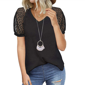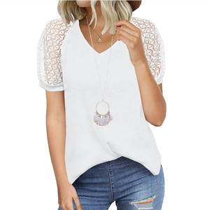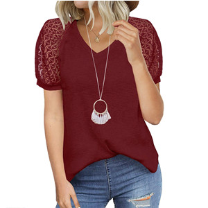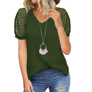 MIHOLL Women’s T Shirt Lace Short Sleeve V Neck Shirts Loose Casual Summer Tunic Tops