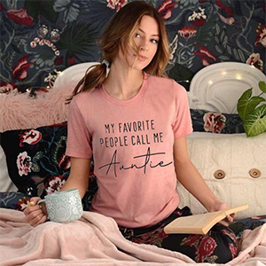 Design: My Favourite Folks call me auntie letter print Blouse, the sayings was once funny and beautiful, which will display your like to auntie, nephew and niece, classical casual o neck taste make you are feeling more at ease and at ease