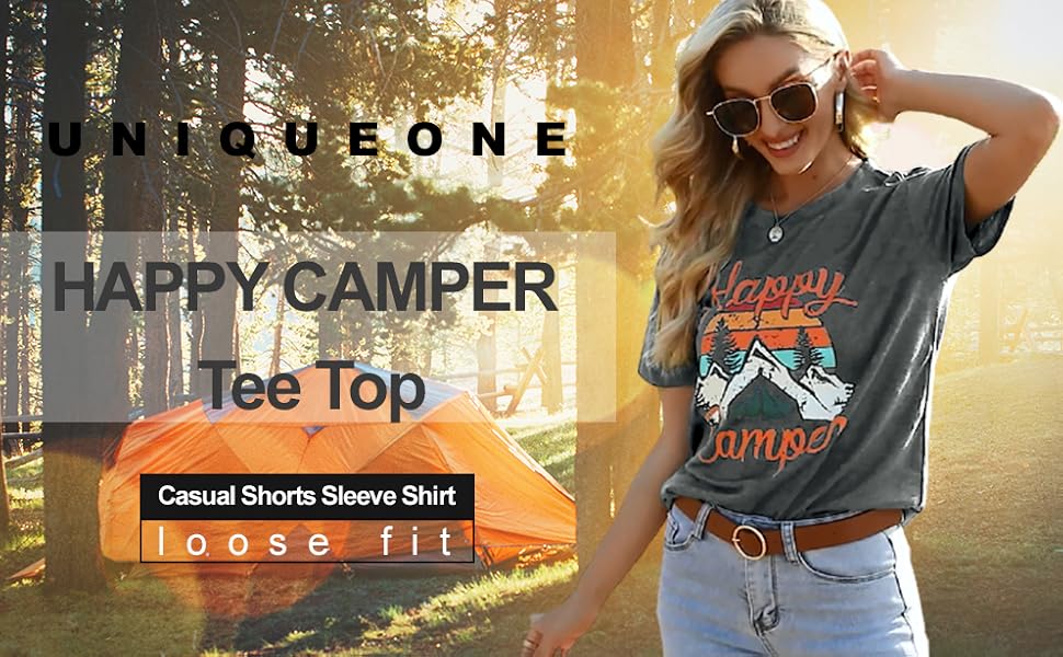 T-Shirt Material: At UNIQUEONE, comfortable is king! Made from premium and super soft cotton blend, this cute happy camper shirt is lightweight, stretchy and breathable on your skin. You will stay comfy all day long